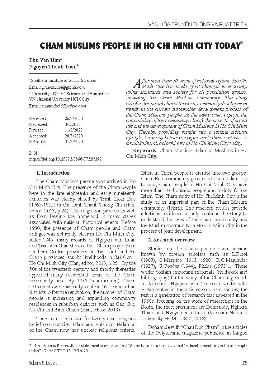 Người Chăm Hồi giáo ở thành phố Hồ Chí Minh hiện nay = Cham muslims people in Ho Chi Minh city today