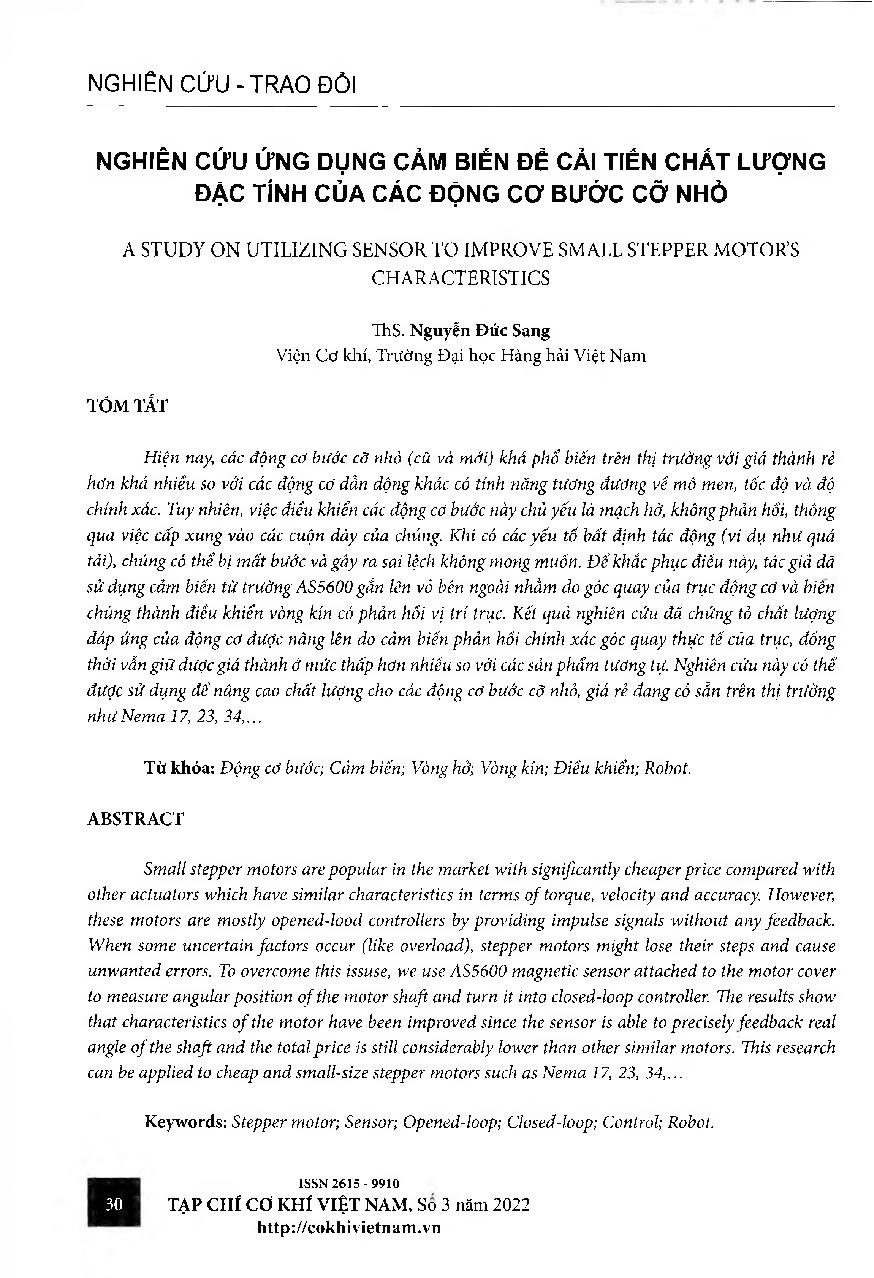 Nghiên cứu ứng dụng cảm biến để cải tiến chất lượng đặc tính của các động cơ bước cỡ nhỏ = A study on utilizing sensor to improve small stepper motor’s characteristics