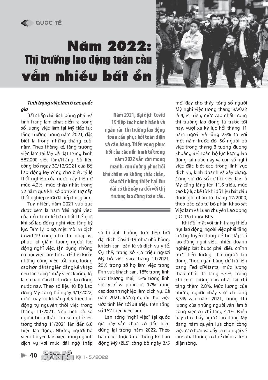 Năm 2022: Thị trường lao động toàn cầu vẫn nhiều bất ổn