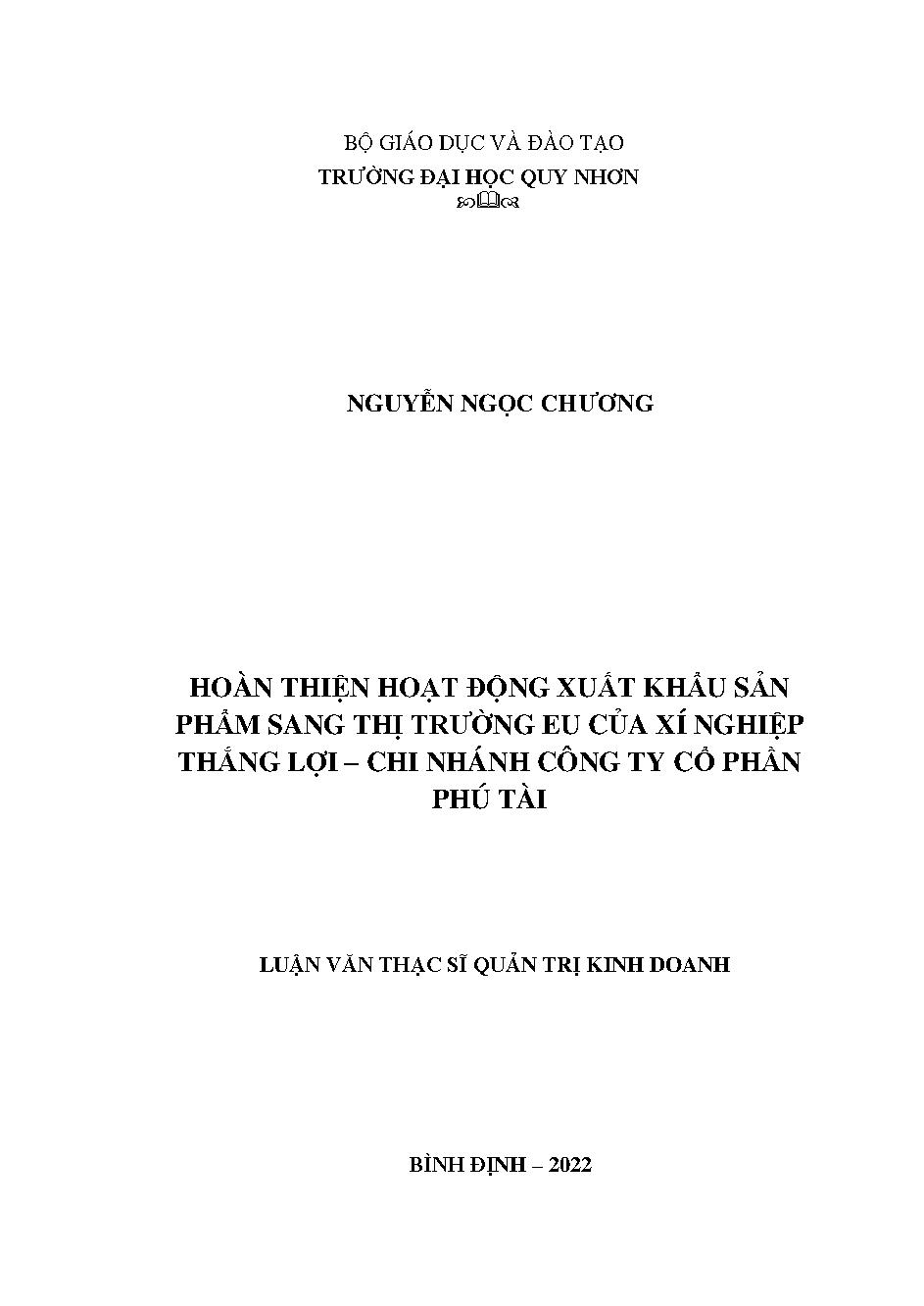 Hoàn thiện hoạt động xuất khẩu sản phẩm sang thị trường EU của xí nghiệp Thắng Lợi - Chi nhánh công ty cổ phần Phú Tài