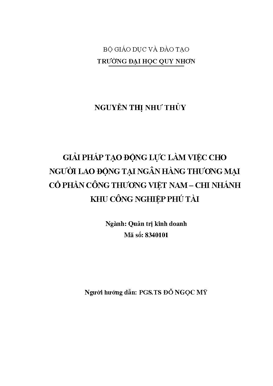 Giải pháp tạo động lực làm việc cho người lao động tại Ngân hàng Thương mại Cổ phần Công thương Việt Nam - Chi nhánh Khu công nghiệp Phú Tài