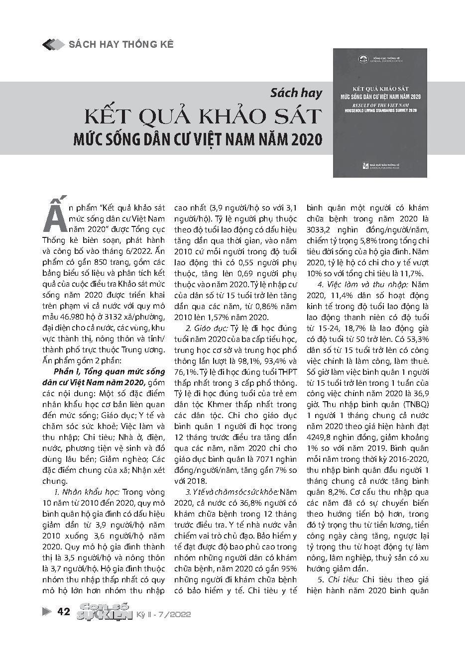 Kết quả khảo sát mức sống dân cư Việt Nam năm 2020 = Results of the survey on Vietnam&; 39;s living standards in 2020