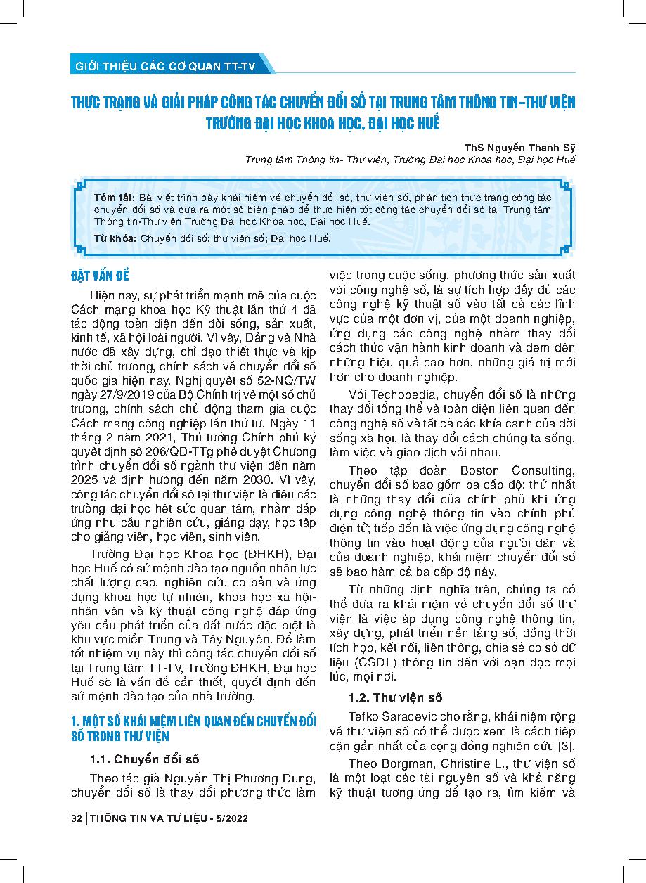 Thực trạng và giải pháp công tác chuyển đổi số tại Trung tâm Thông tin- Thư viện, Trường Đại học Khoa học, Đại học Huế