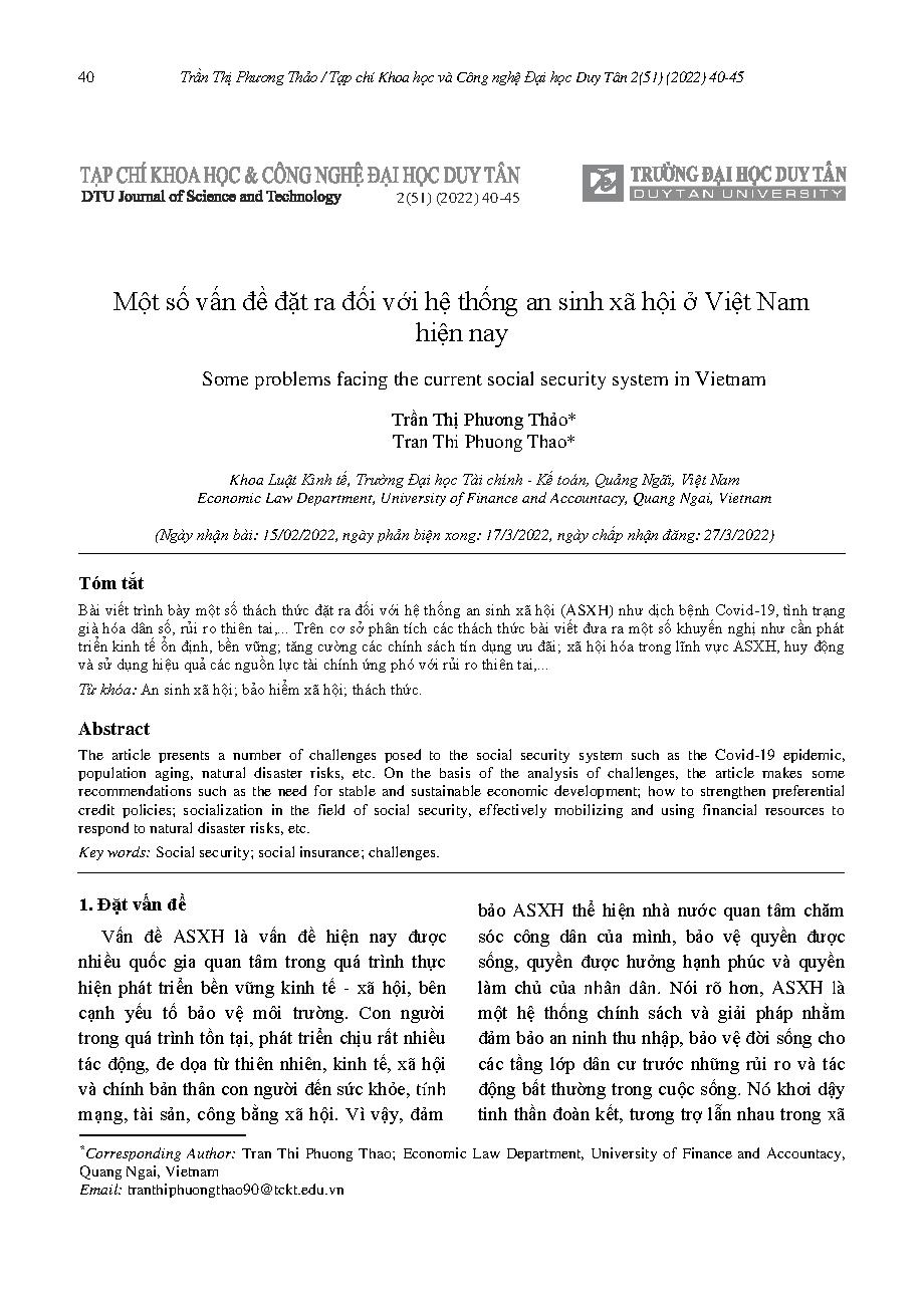 Một số vấn đề đặt ra đối với hệ thống an sinh xã hội ở Việt Nam hiện nay = Some problems facing the current social security system in Vietnam