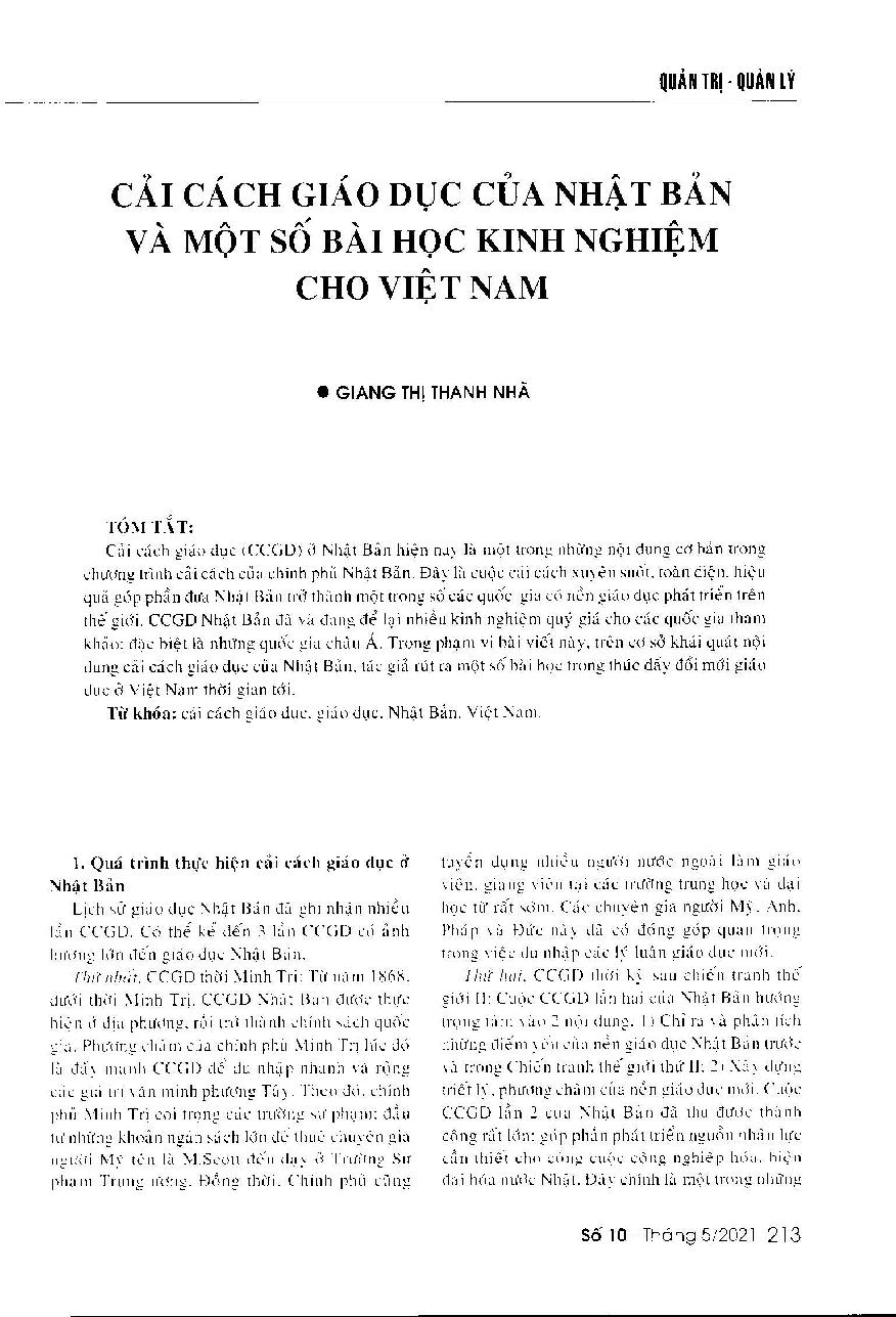 Cải cách giáo dục của Nhật Bản và một số bài học kinh nghiệm cho Việt Nam