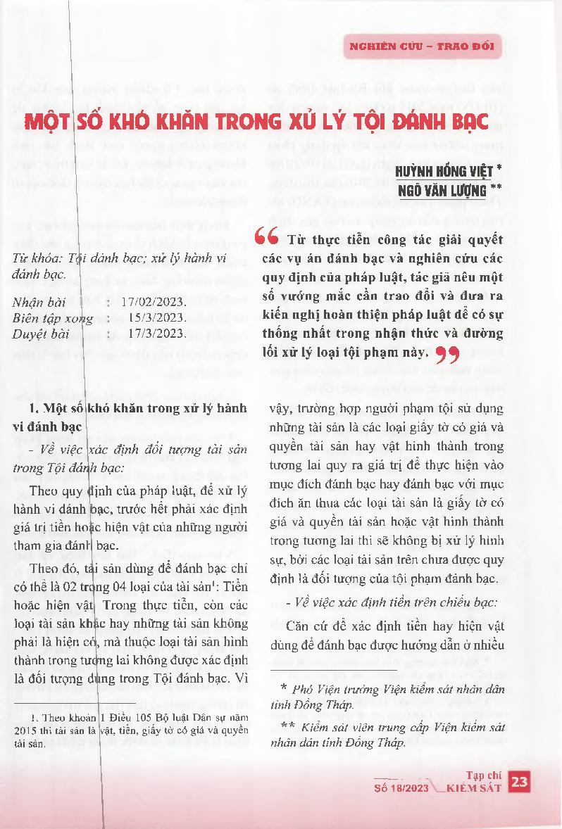 Một số khó khăn trong xử lý tội đánh bạc