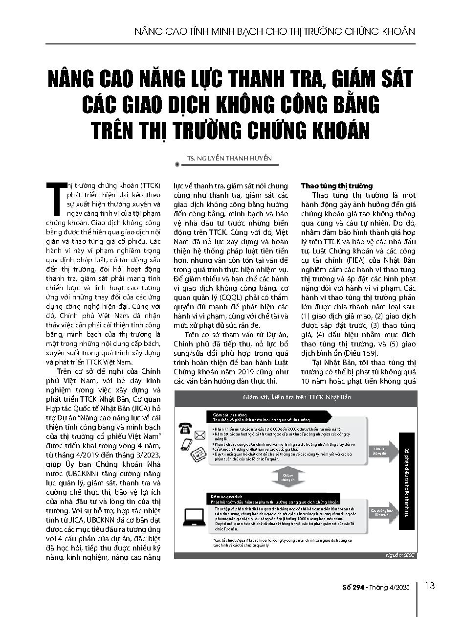 Nâng cao năng lực thanh tra, giám sát các giao dịch không công bằng trên thị trường chứng khoán = Improving capacity of market supervision and detection of unfair transactions
