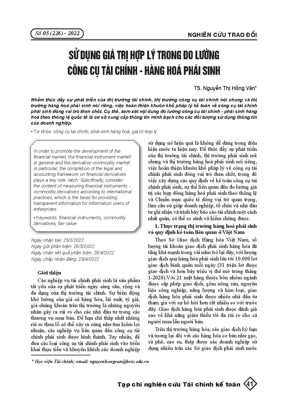 Sử dụng giá trị hợp lý trong đo lường công cụ tài chính - hàng hoá phái sinh = Use of the fair value in measurement of financial instruments - Derivatives