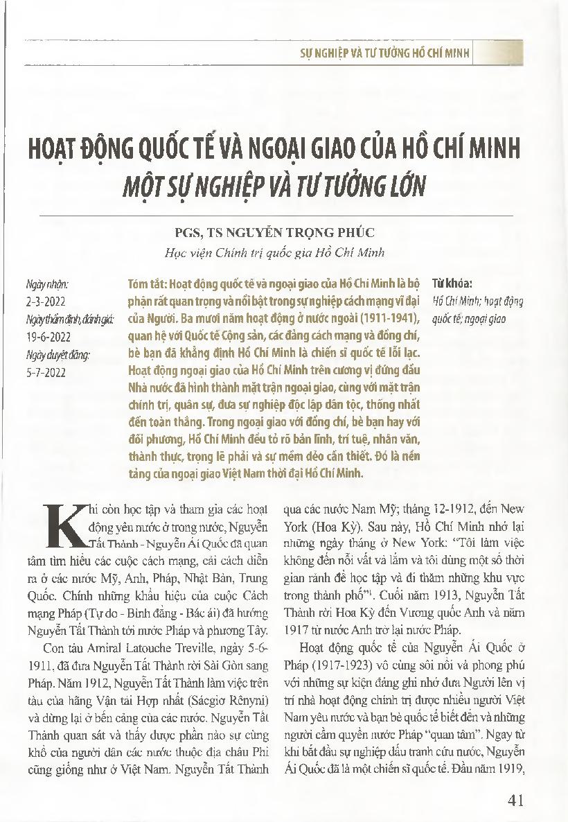 Hoạt động quốc tế và ngoại giao của Hồ Chí Minh một sự nghiệp và tư tưởng lớn = Ho Chi Minh&; 39;s international and diplomatic activities - A great career and mind