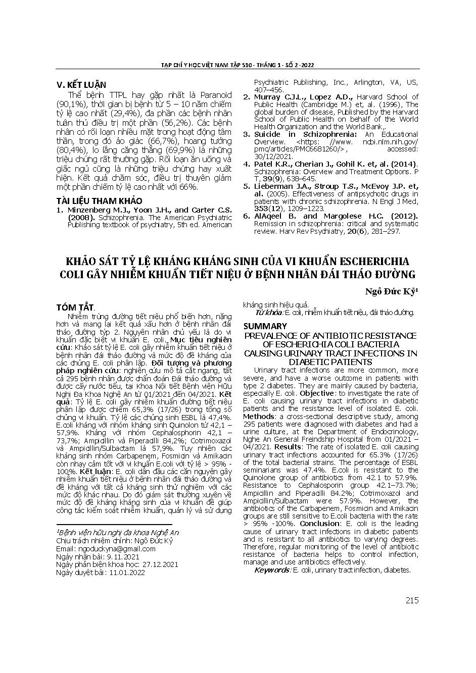 Khảo sát tỷ lệ kháng kháng sinh của vi khuẩn Escherichia coli gây nhiễm khuẩn tiết niệu ở bệnh nhân đái tháo đường = Prevalence of antibiotic resistance of Escherichia coli bacteria causing urinary tract infections in diabetic patients