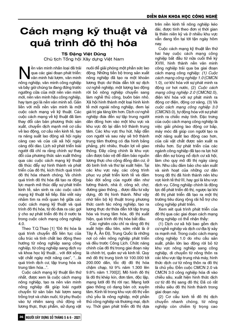 Cách mạng kỹ thuật và quá trình đô thị hóa