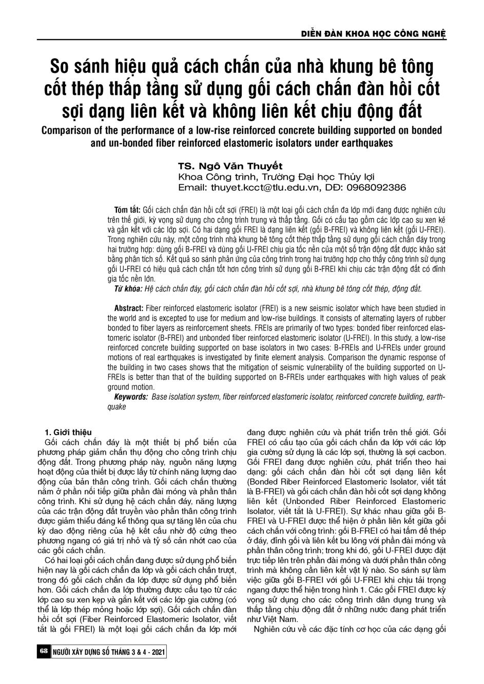 So sánh hiệu quả cách chấn của nhà khung bê tông cốt thép thấp tầng sử dụng gối cách chấn đàn hồi cốt sợi dạng liên kết và không liên kết chịu động đất