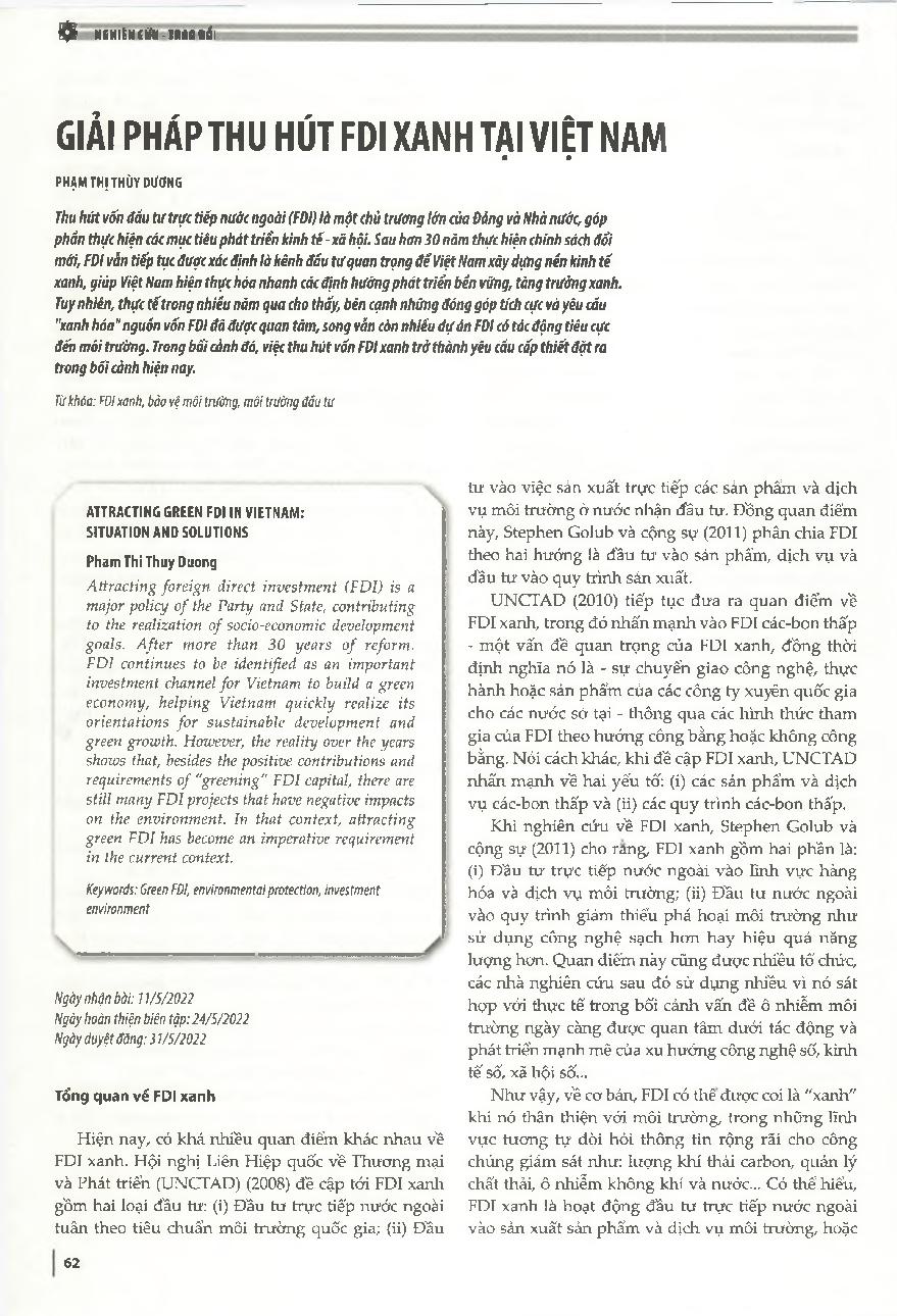 Giải pháp thu hút FDI xanh tại Việt Nam = Attracting green FDI in Vietnam: Situation and solutions