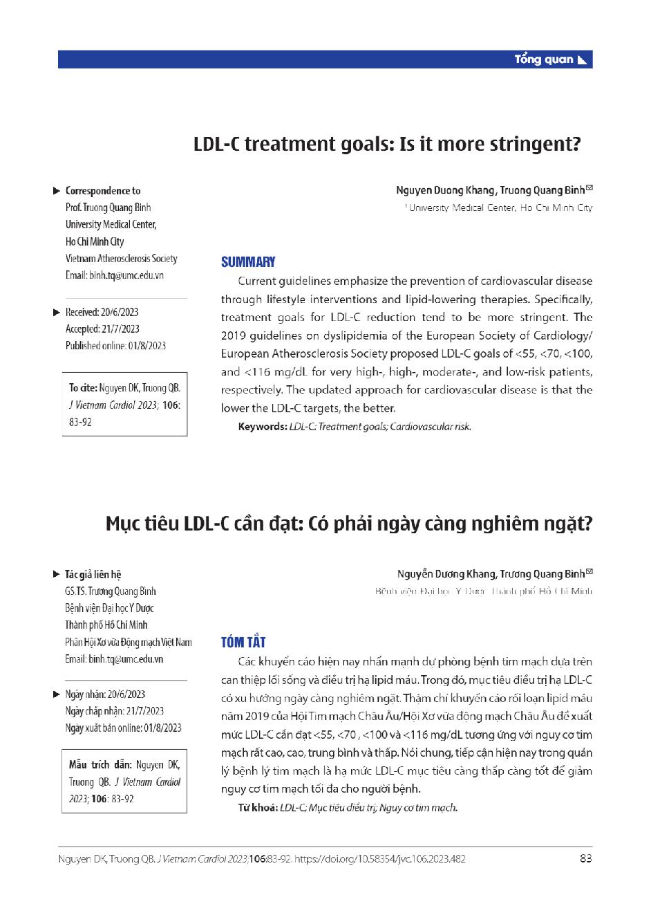 Mục tiêu LDL-C cần đạt: Có phải ngày càng nghiêm ngặt? = LDL-C treatment goals: Is it more stringent?