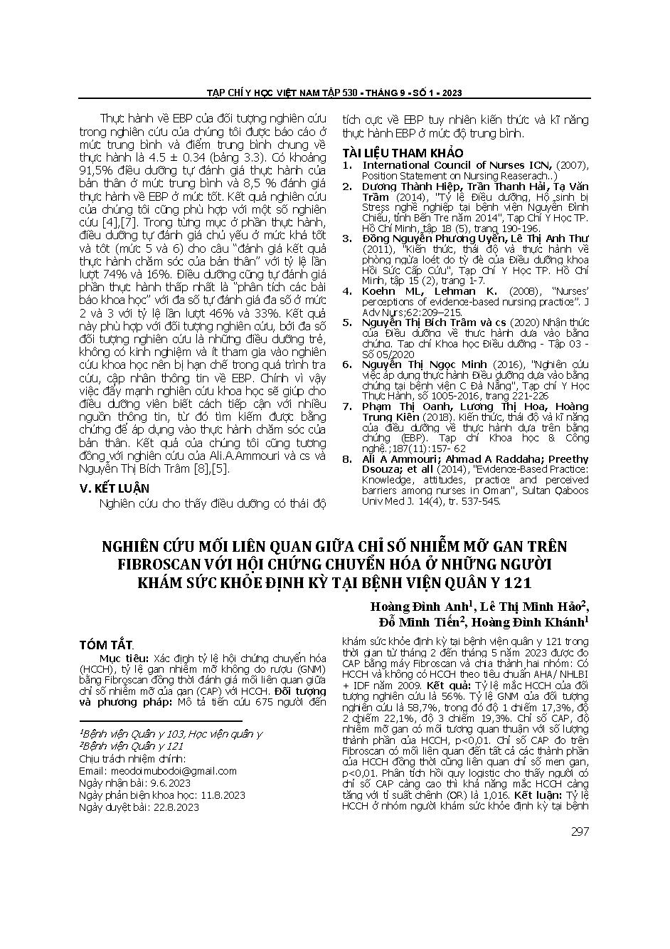 Nghiên cứu mối liên quan giữa chỉ số nhiễm mỡ gan trên fibroscan với hội chứng chuyển hóa ở những người khám sức khỏe định kỳ tại bệnh viện quân y 121 = Study of the association between hepatic controlled attenuation parameter using fibroscan and metaboli