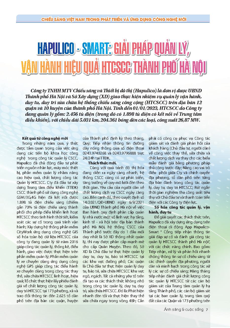 APULICO - SMART: giải pháp quản lý,vận hành hiệu quả HTCSCC Thành phố Hà Nội