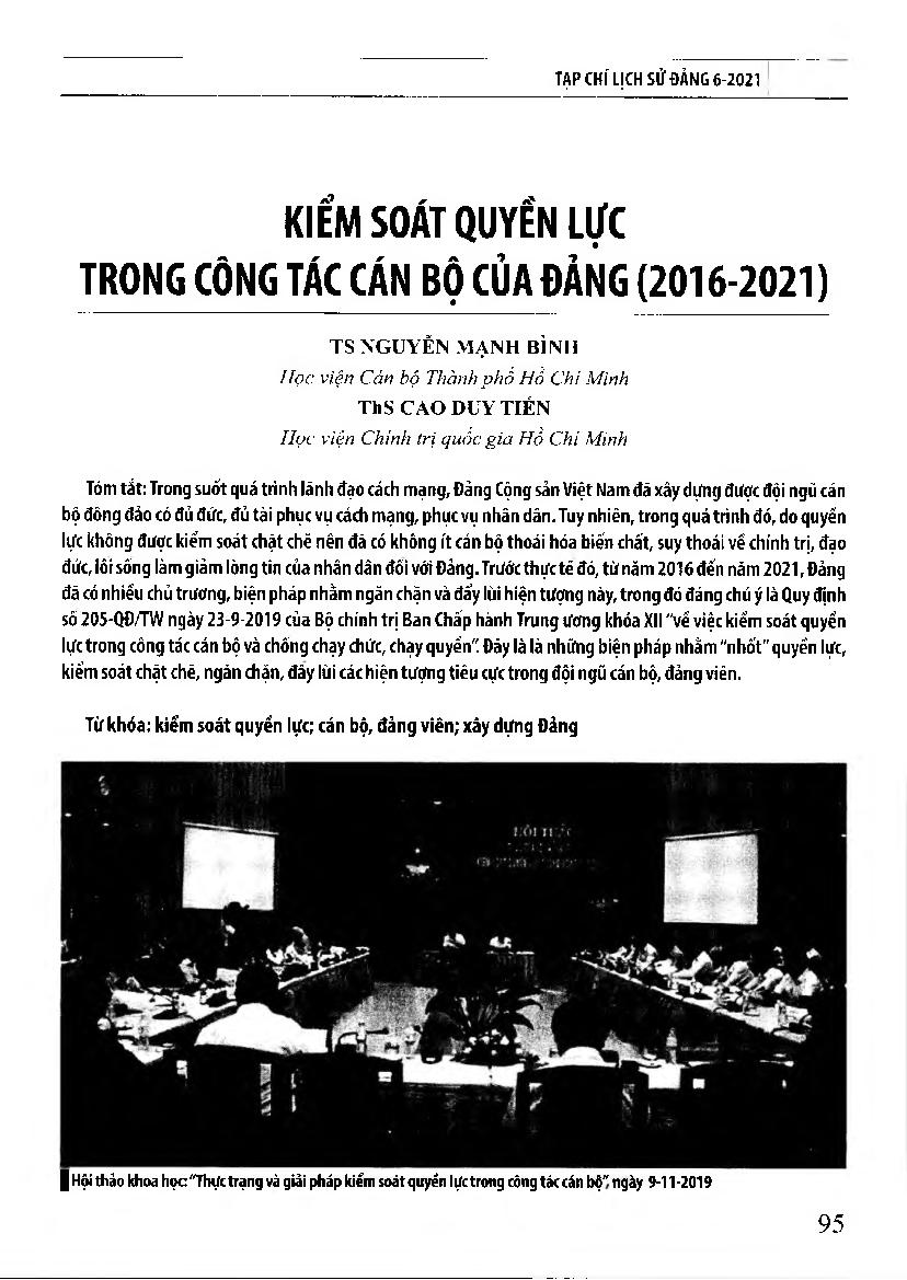 Kiểm soát quyền lực trong công tác cán bộ của Đảng (2016-2021)