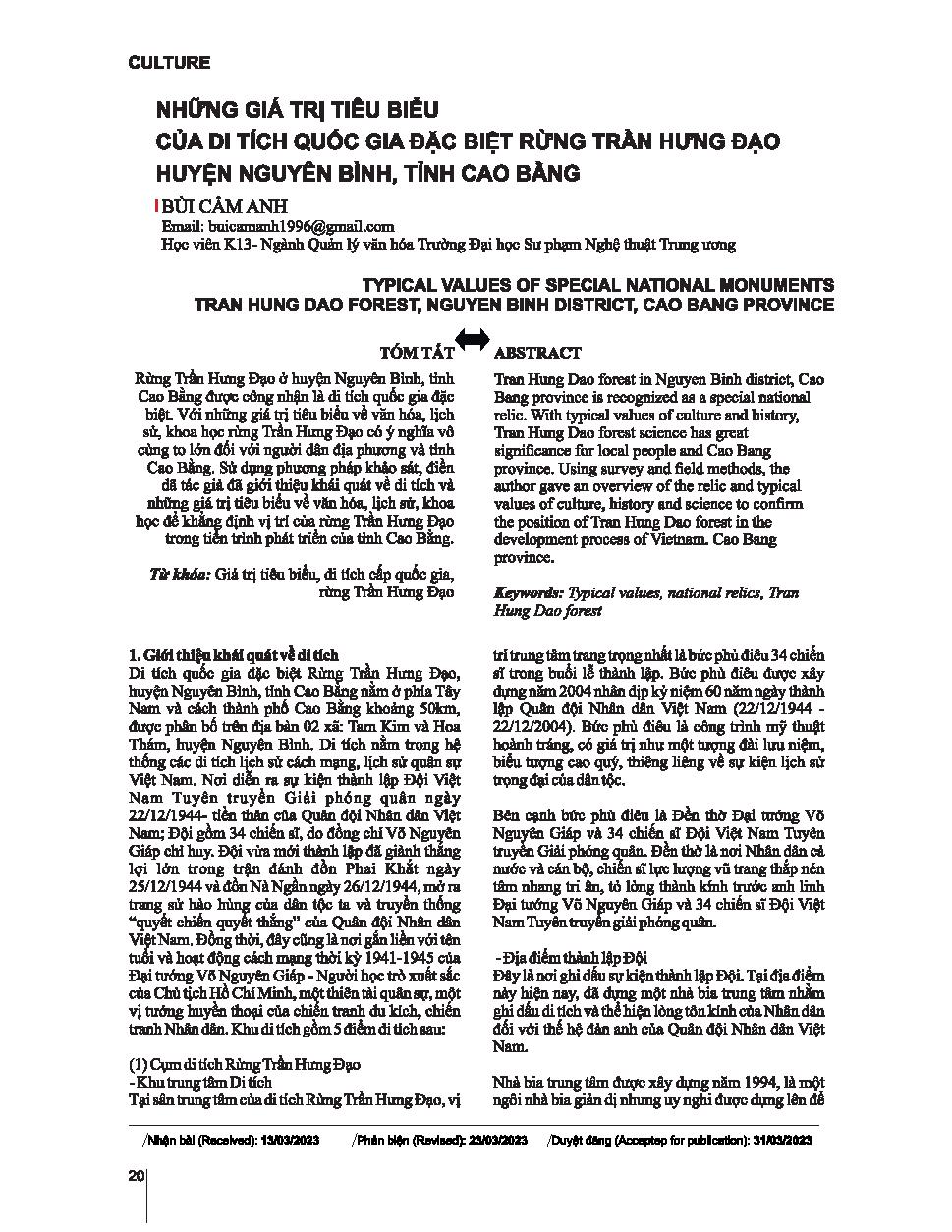 Những giá trị tiêu biểu của di tích quốc gia đặc biệt rừng Trần Hưng Đạo huyện Nguyên Bình, tỉnh Cao Bằng