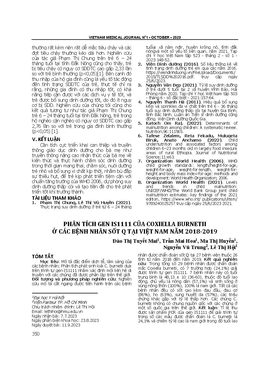 Phân tích gen IS1111 của Coxiella burnetii ở các bệnh nhân sốt Q tại Việt Nam năm 2018-2019 = Analysis of the is1111 gene of Coxiella burnetii in Q fever patients from Viet Nam from 2018 to 2019
