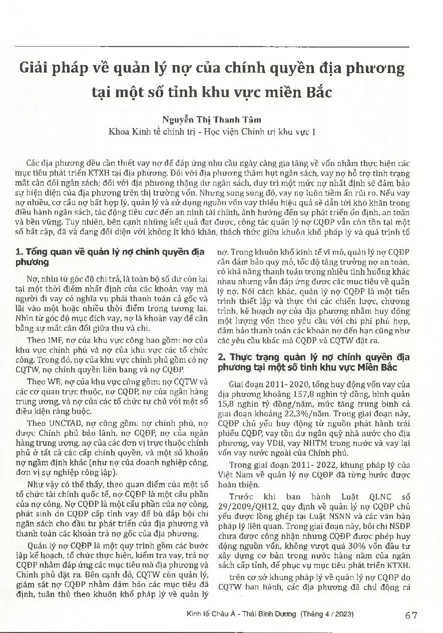 Giải pháp v'ê quản lý nợ của chính quyền địa phương tại một số tỉnh khu vực miền Bắc