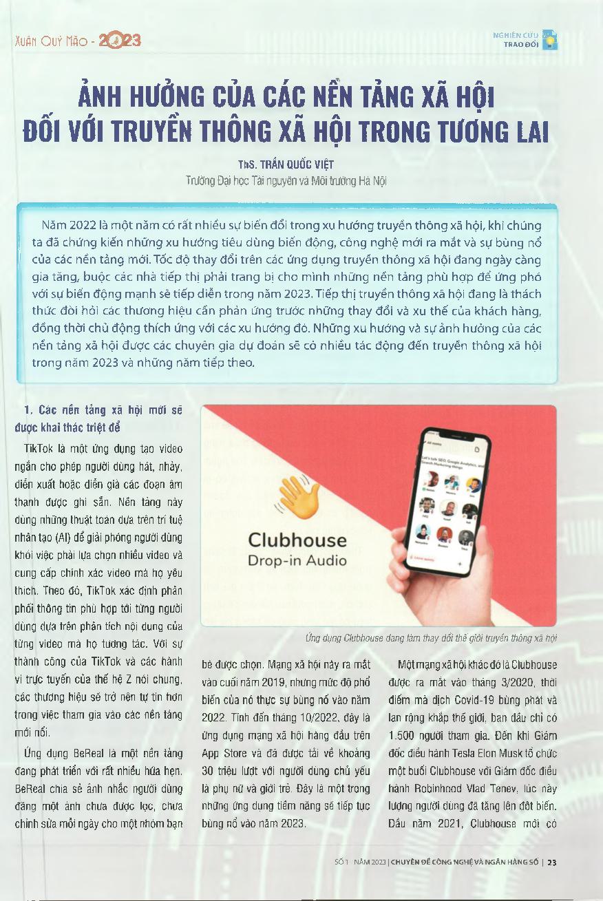 Ảnh hưởng của các nền tảng xã hội đối với truyền thông xã hội trong tương lai. = Influence of social platforms on future social media.