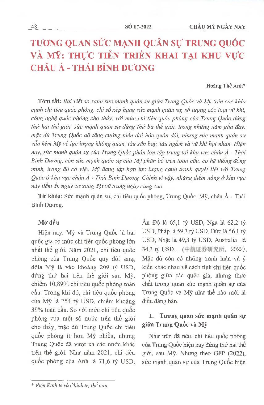 Tương quan sức mạnh quân sự Trung Quốc và Mỹ: Thực tiễn triển khai tại khu vực Châu Á - Thái Bình Dương
