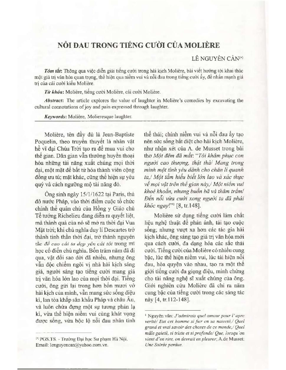 Nỗi đau trong tiếng cười của Molière = The painful emotions in Moliere’s laughter
