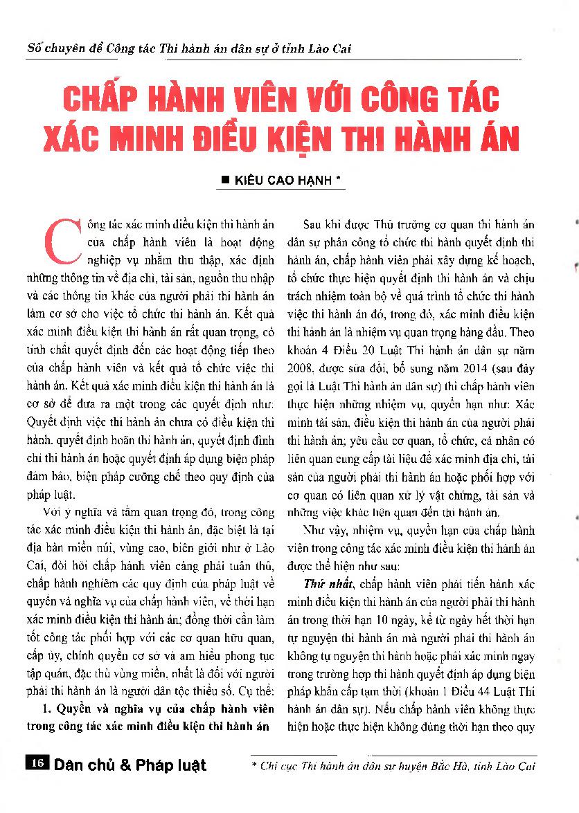 Chấp hành viên với công tác xác minh điều kiện thi hành án