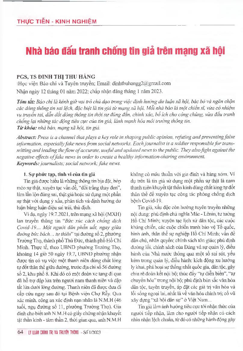 Nhà báo đấu tranh chống tin giả trên mạng xã hội = Journalists fight against lake news on social networks