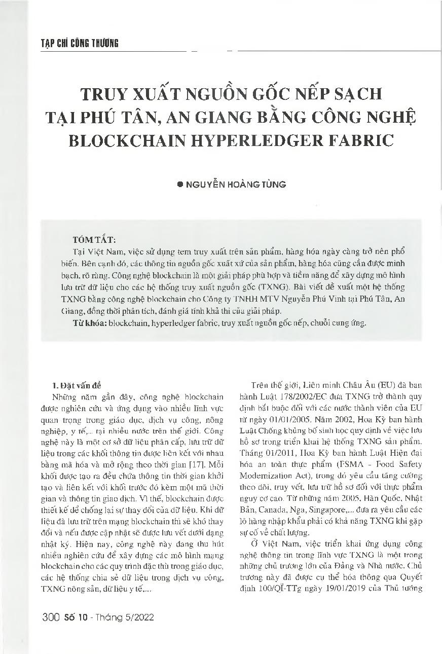 Truy xuất nguồn gốc nếp sạch tại Phú Tân, An Giang bằng công nghệ Blockchain Hyperledger Fabric = Tracing the origin of sticky rice in Phu Tan, An Giang province by using the Hyperledger Fabric Blockchain technology