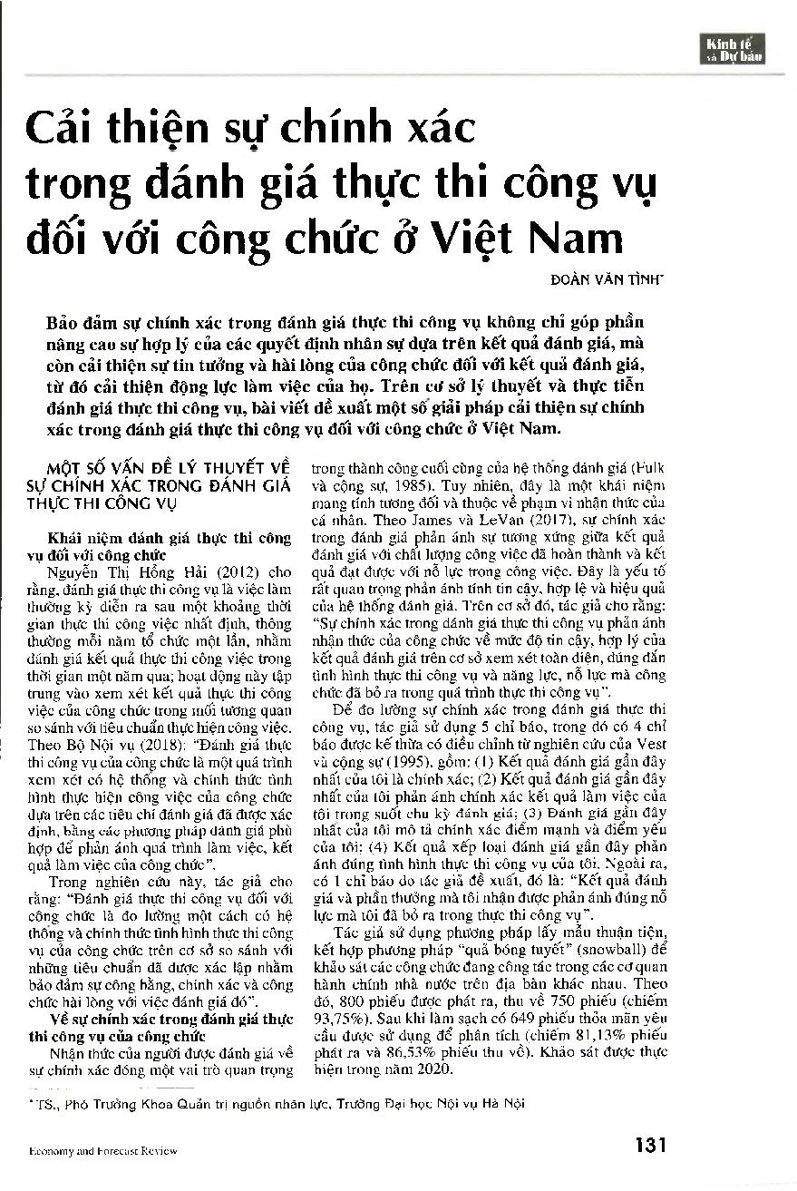 Cải thiện sự chính xác trong đánh giá thực thi công vụ đối với công chức ở Việt Nam