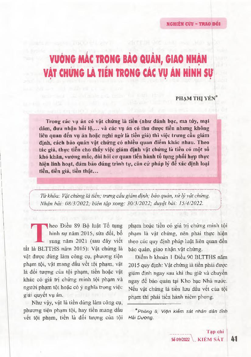 Vướng mắc trong bảo quản, giao nhận vật chứng là tiền trong các vụ án hình sự
