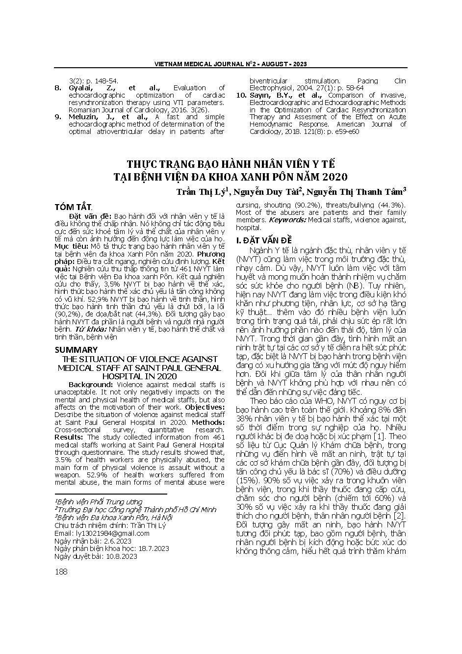 Thực trạng bạo hành nhân viên y tế tại Bệnh viện Đa khoa Xanh Pôn năm 2020
