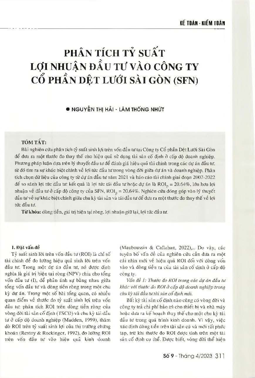 Phân tích tỷ suất lợi nhuận đầu tư vào công ty cổ phần Dệt lưới sài Gòn (SFN)