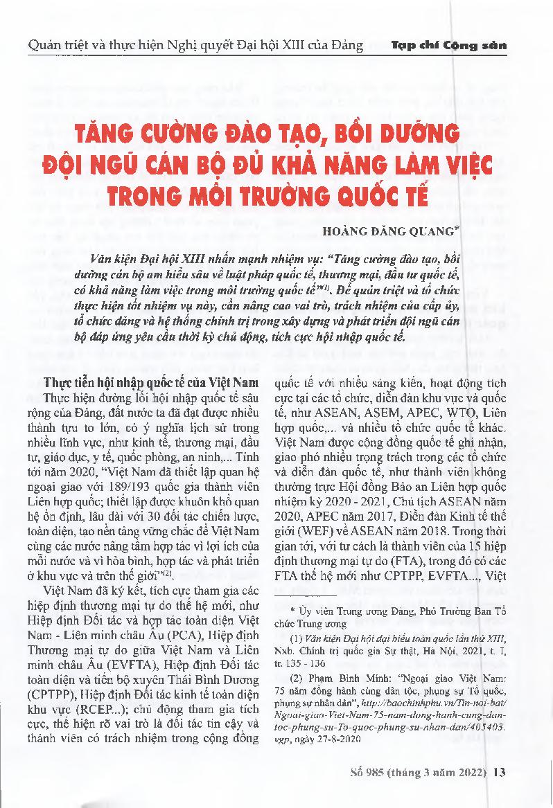 Tăng cường đào tạo, bồi dưỡng đội ngũ cán bộ đủ khả năng làm việc trong môi trường quốc tế