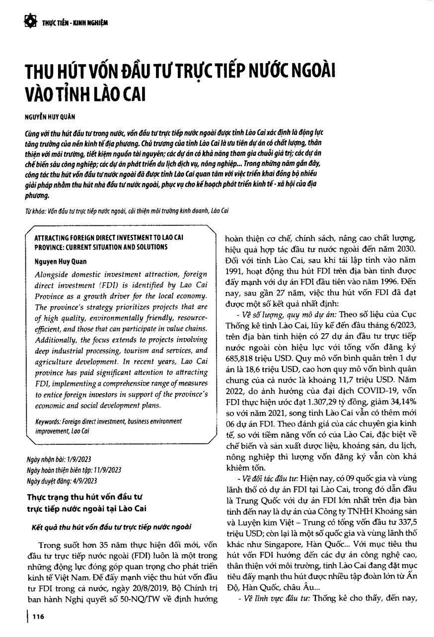 Thu hút vốn đầu tư trực tiếp nước ngoài vào tỉnh Lào Cai