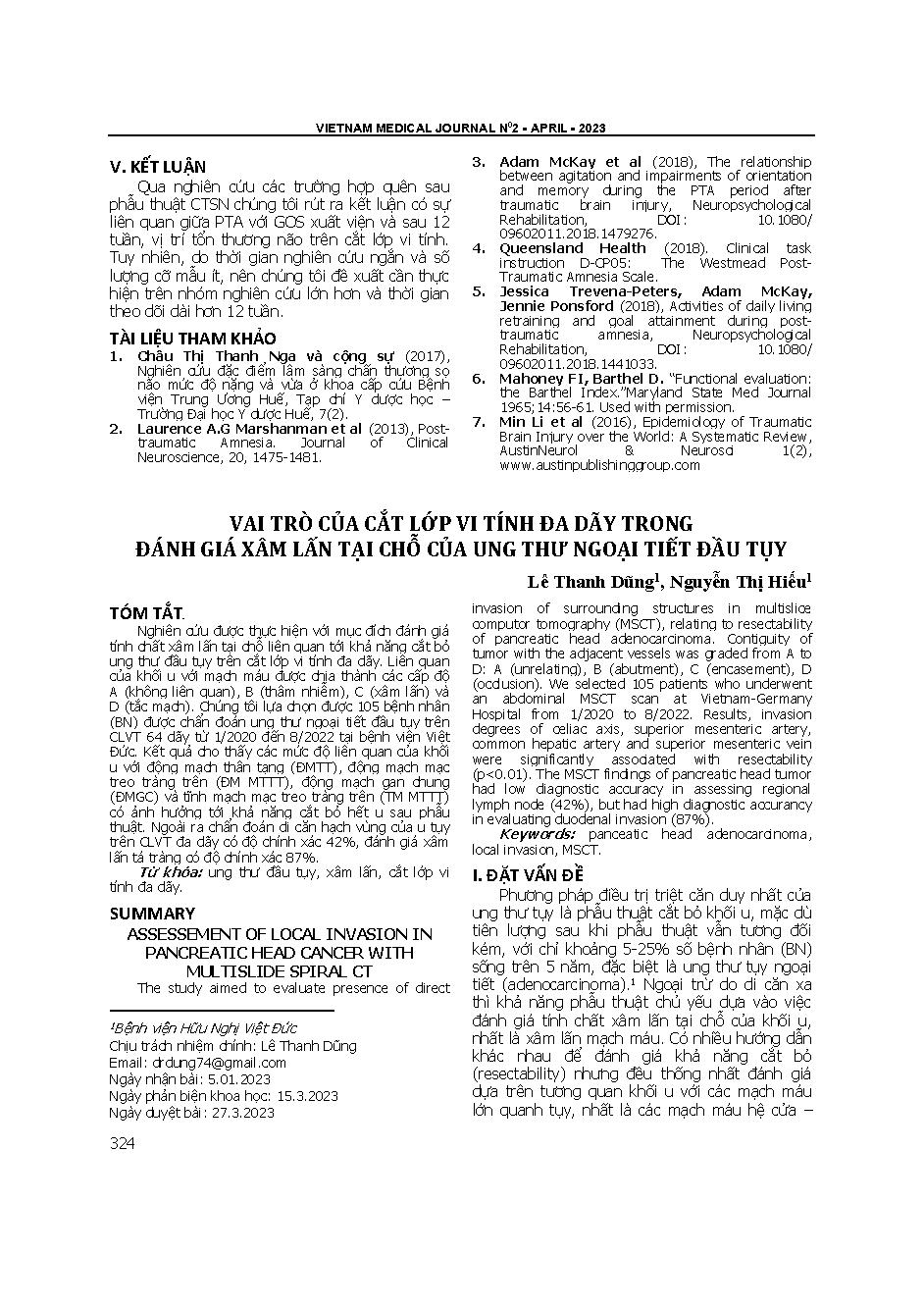 Vai trò của cắt lớp vi tính đa dãy trong đánh giá xâm lấn tại chỗ của ung thư ngoại tiết đầu tụy = Assessment of local invasion in pancreatic head cancer with multislice spiral CT