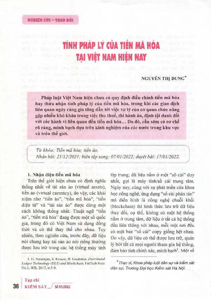 Tính pháp lý của tiền mã hóa tại Việt Nam hiện nay