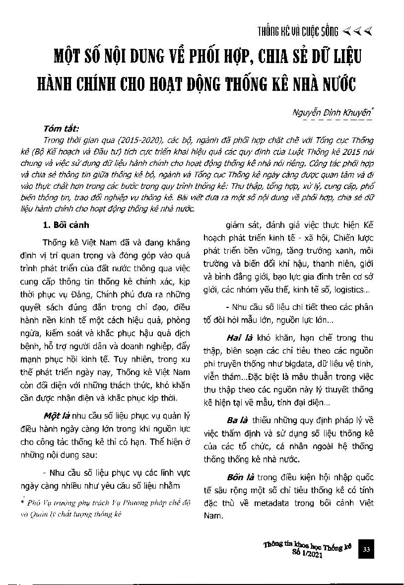 Một số nội dung về phối hợp, chia sẻ dữ liệu hành chính cho hoạt động thống kê Nhà nước