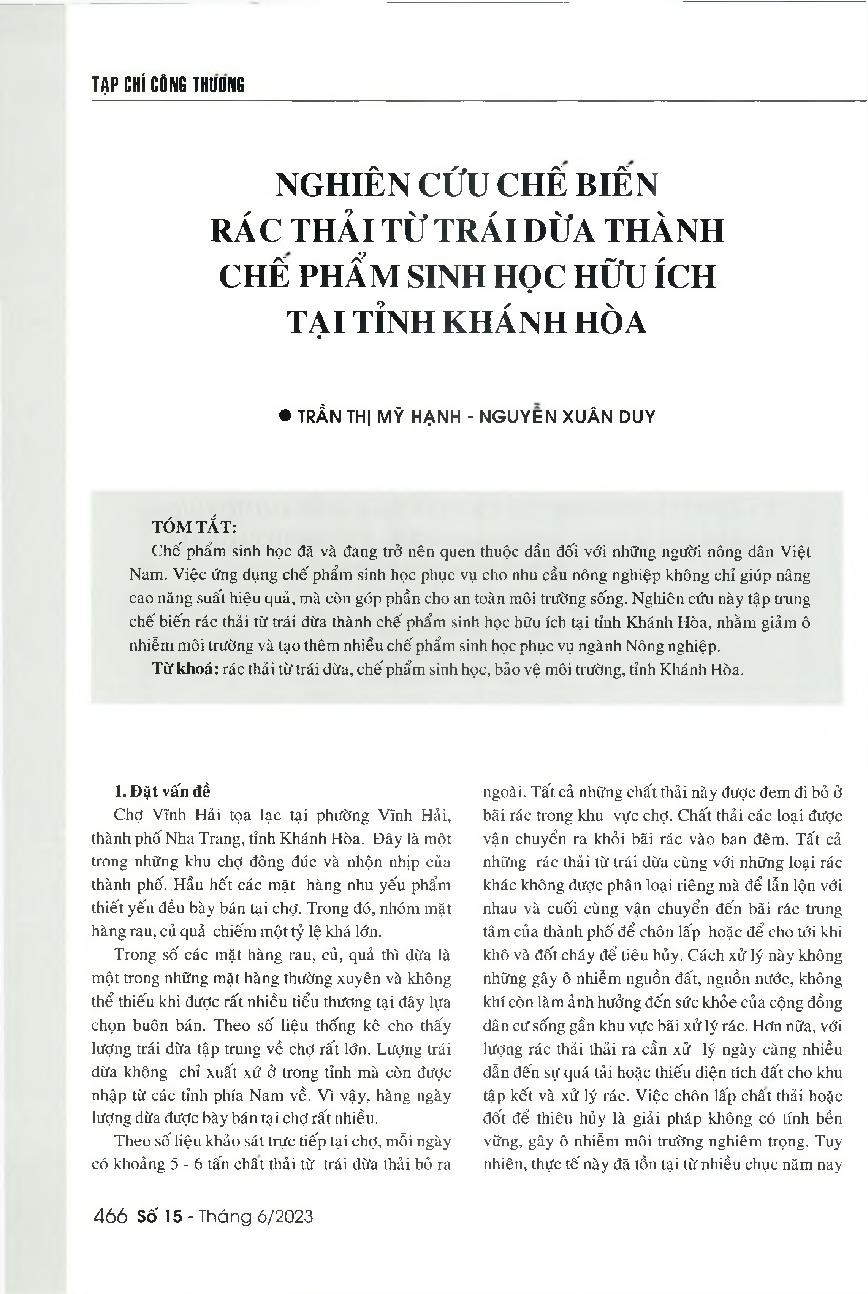 Nghiên cứu chế biến rác thải từ trái dừa thành chế phẩm sinh học hữu ích tại tỉnh Khánh Hòa