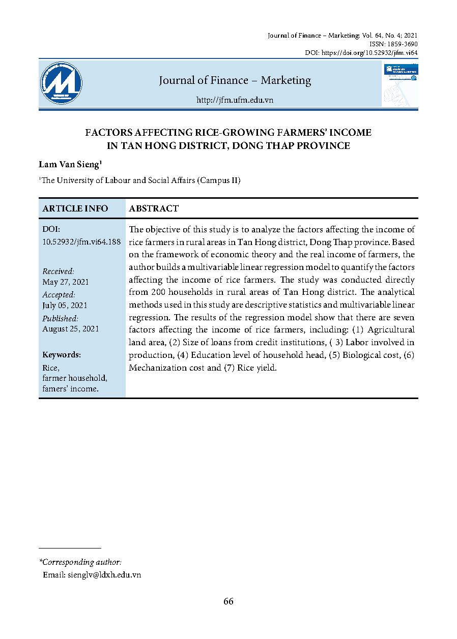 Những yếu tố ảnh hưởng đến thu nhập của hộ nông dân trồng lúa tại huyện Tân Hồng, tỉnh Đồng Tháp