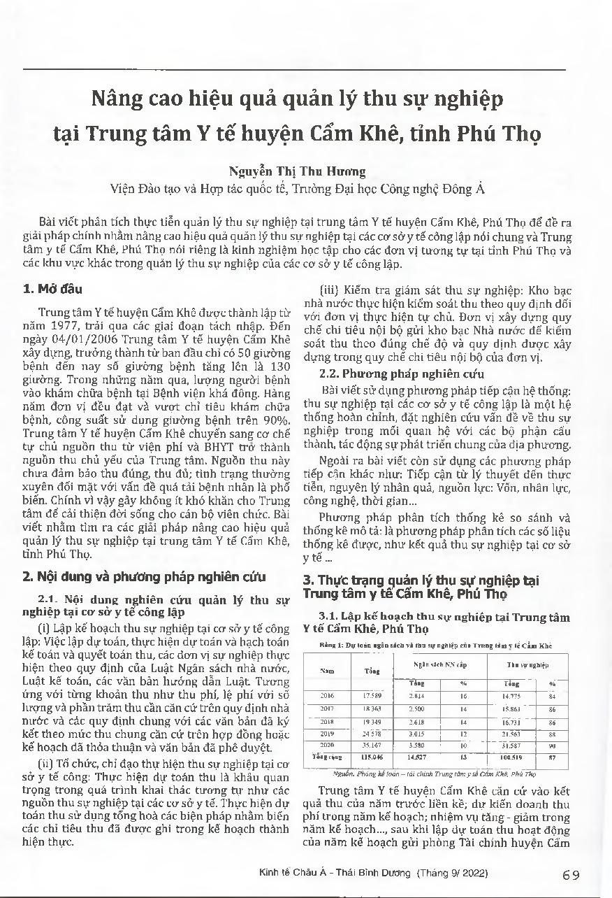 Nâng cao hiệu quả quản lý thu sự nghiệp tại Trung tâm Y tế huyện cẩm Khê, tỉnh Phú Thọ