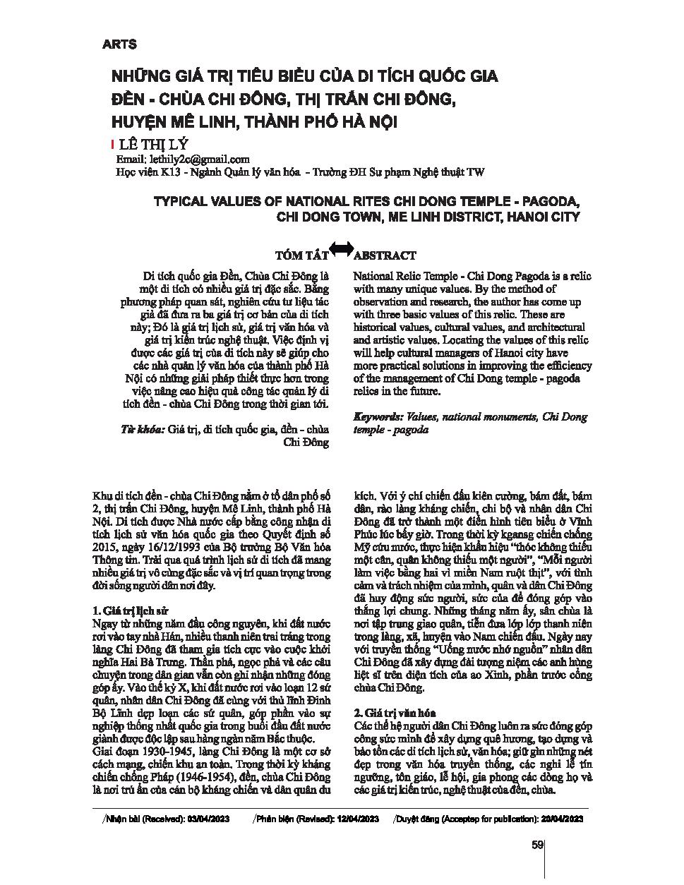 Những giá trị tiêu biểu của di tích quốc gia đền - chùa Chi Đông, thị trấn Chi Đông, huyện Mê Linh, thành phố Hà Nội