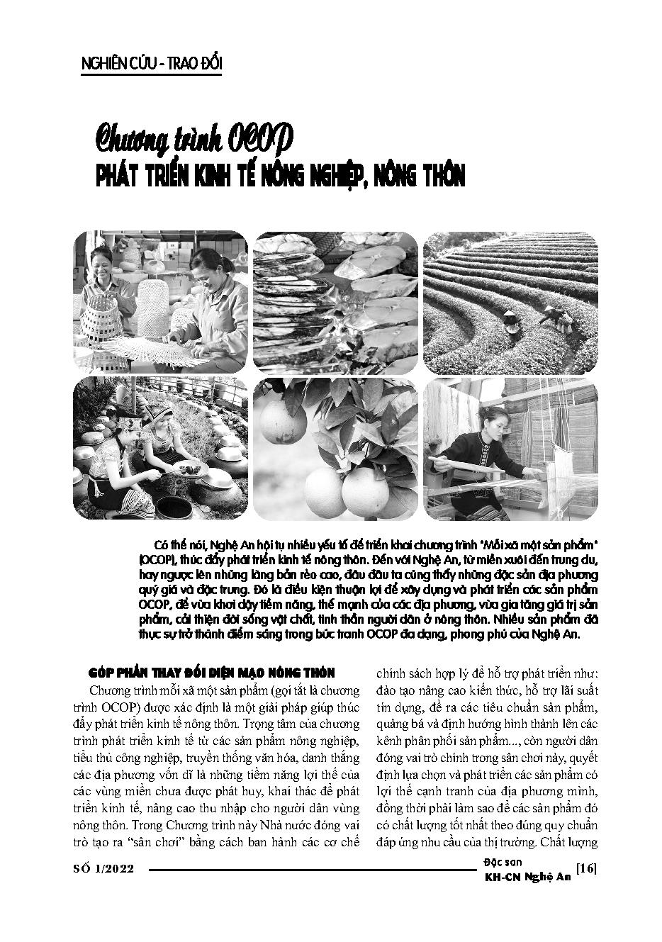 Chương trình OCOP phát triển kinh tế nông nghiệp, nông thôn