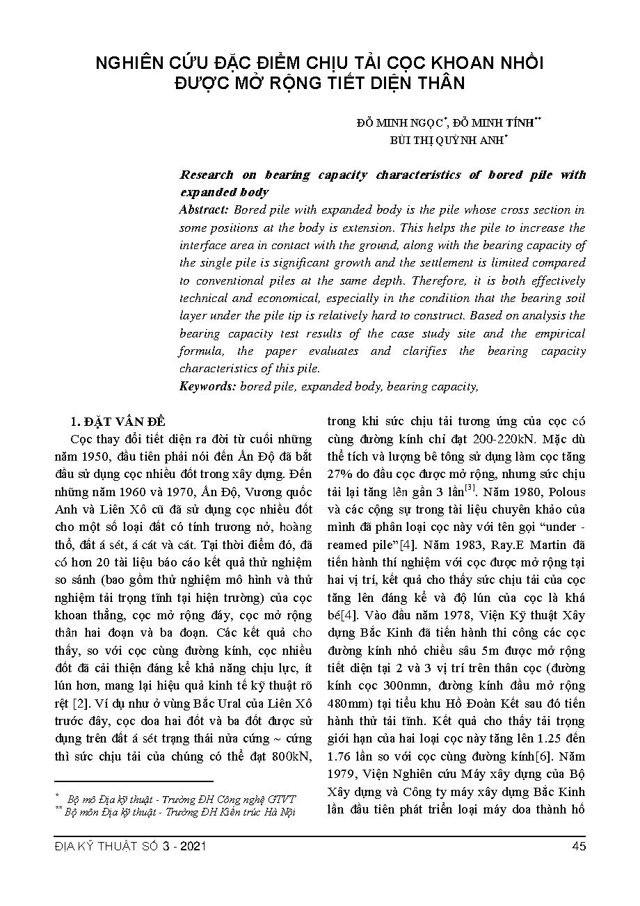 Nghiên cứu đặc điểm chịu tải cọc khoan nhồi được mở rộng tiết diện thân