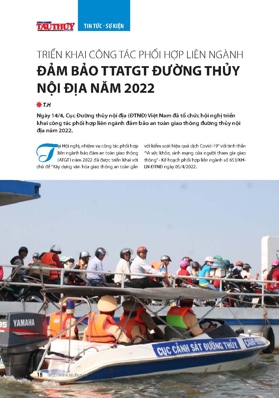 Triển khai công tác phối hợp liên ngành đảm bảo TTATGT đường thủy nội địa năm 2022 = Deploy inter-sectoral coordination to ensure traffic safety in inland waterways in 2022