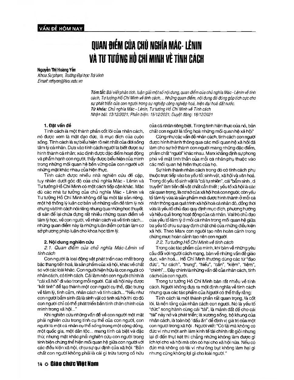 Quan điểm của chủ nghĩa Mác Lênin và tư tưởng Hồ Chí Minh về tính cách = The point of view of Marxism-Leninism and Ho Chi Minh&; 39;s Thought on personality