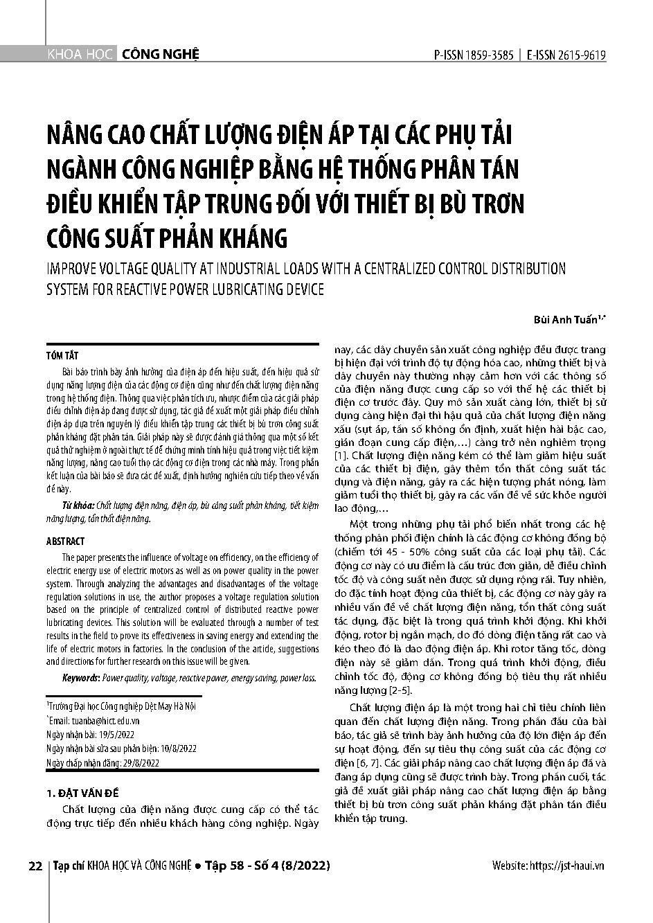 Nâng cao chất lượng điện áp tại các phụ tải ngành công nghiệp bằng hệ thống phân tán điều khiển tập trung đối với thiết bị bù trơn công suất phản kháng = Improve voltage quality at industrial loads with a centralized control distribution system for reacti