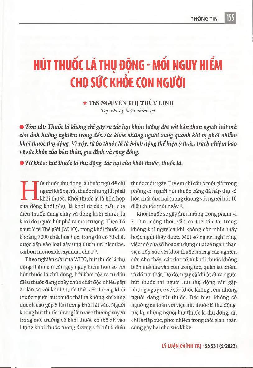 Hút thuốc lá thụ động - mối nguy hiểm cho sức khỏe con người = Passive smoking - danger to human health