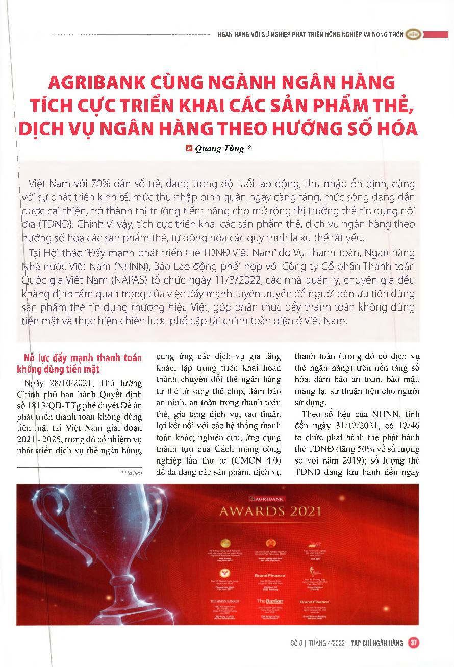Agribank cùng ngành Ngân hàng tích cực triển khai các sản phẩm thẻ, dịch vụ ngân hàng theo hướng số hóa = Agribank and the banking industry actively deploy card products and banking services in the direction of digitization